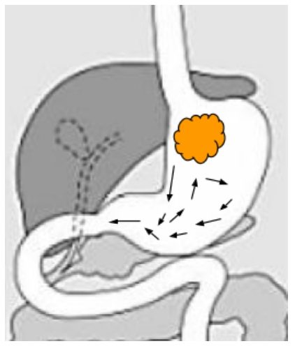 L’arrivée du bol alimentaire va entraîner des contractions de l’estomac et il va être brassé. L’estomac va produire des sucs gastriques composés de substances chimiques qui vont permettre de digérer ce bol alimentaire. Les aliments vont être diminués en taille et leur température sera adaptée pour qu’ils puissent passer au niveau de l’intestin grêle. Le bol alimentaire est transformé en chyme gastrique, son passage de l’estomac vers l’intestin grêle s’appelle la vidange gastrique.