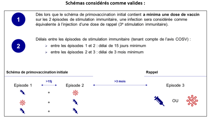 A noter que le rappel à 4 mois de la 2e injection ou de l’infection est toujours recommandé pour les plus de 18 ans même si on peut se contenter pour les plus jeunes d’assimiler une infection à une injection.