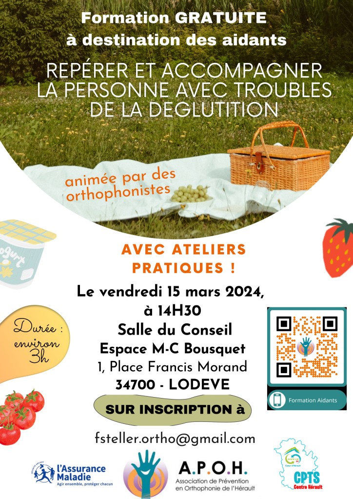 En partenariat avec la Caisse Primaire d’Assurance Maladie, l’Association de Prévention en Orthophonie de l’Hérault (APOH) propose une action de prévention sur les troubles de la déglutition auprès des aidants naturels de personnes présentant ou à risque de dysphagie dans l’Hérault.